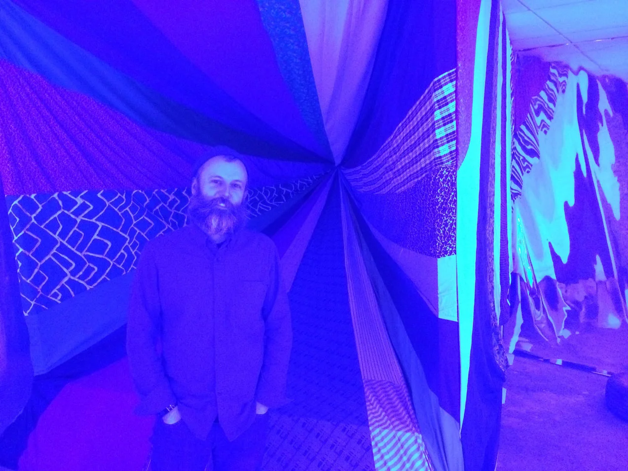 Erin Ko, Are We There Yet, 2017, projection, VR headset, real-world materials, in Personal Tesseract, curated by Anne Spaltzer